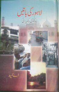 اے حمید نے لاہور پر بہت زیادہ لکھا ہے بلکہ اردو میں شہر بے مثال پر سب سے زیادہ انہوں نے ہی لکھا ہے اس موضوع پر ان کی متعدد کتابیں بھی شائع ہو چکی ہیں جن میں ایک کتا ب ”لاہور کی باتیں“ (کچھ نئی کچھ پرانی) بھی شامل ہے جسے مقبول اکیڈمی نے 2008ء میں شائع کیا تھا، اے حمید نے اپنی اس کتاب کا انتساب طاہر لاہوری مرحوم کے نام کیا تھا جوخود بھی ”میرا سوہنا شہر لاہور“جیسی اہم کتاب کے مصنف ہیں، ”لاہور کی باتیں“ 14 مضامین پر مشتمل کتاب ہے جن کے عنوانات میرا لاہور، دیکھو شہر لاہور، ہوٹلوں کا لاہور، تہواروں کا لاہور، راوی کا میلہ، راوی بپھرتا ہے، وادیاں، بہارکی وادی، رت آئے رت جائے، سڑکیں اورکتبے، نومبرکی ایک رات، میں بھی حاضرتھا وہاں، ڈرامہ لیلیٰ مجنوں اصلی اورچہاردرویش ہیں، بنیادی طورپر یہ طنزیہ ومزاحیہ مضامین کا مجموعہ ہے یہ مضامین انہوں نے آزادی کے فوراَ بعد لاہور کے مختلف اخبارات وجرائد کیلئے لکھے تھے لیکن ان مضامین کے بیشترکردار، مقامات اور واقعات لاہور شہر سے تعلق رکھتے ہیں۔